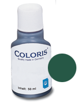 Stempelfarbe in Grün von Coloris ohne Öl, 50 ml - Universalfarbe. Reine, konzentrierte Glyzerinfarbe, farbkräftig, normaltrocknend, wischfest (auf normalem Papier) und sehr ergiebig. Ideal zum Nachtränken von Stempekissen.